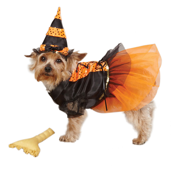 Our Spellhound Witch Dog Costume is a timeless classic. This satin, orange and black pet costume includes a matching hat and plush broom toy with squeaker.