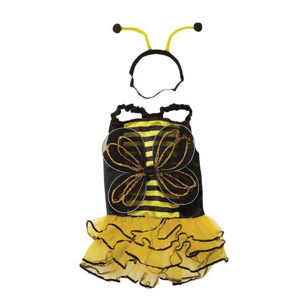 Your baby will be looking sweet as honey in our Bee Mine Costume for dogs. Each adorable honey bee dog costume features a satin bodice, tiered tulle skirt, and glittering wings, and comes with an antenna headpiece. Includes Velcro® closure on the belly for easy on-off. Hand wash only.